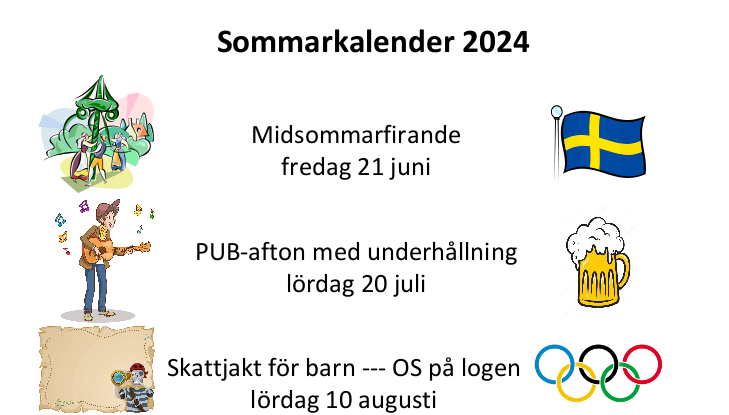 H?r ?r lite samlade datum f?r sommaren. L?gg de h?r datumen och aktiviteterna p? minnet. Mer detaljerat programinneh?ll ?terkommer vi med.